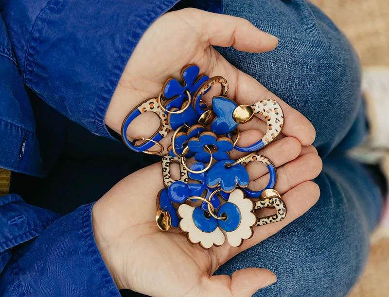 Boucles d’oreilles, colliers, bracelets, ou bien broches… Il y en a pour tous les goûts ! Du pep’s, de la générosité et de l’audace sont les valeurs de la marque. On ose se faire plaisir et mettre des bonnes vibes dans ses tenues !